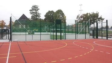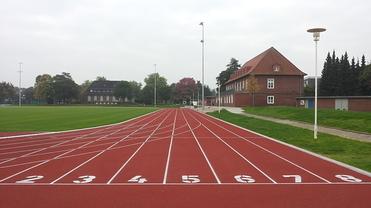 Sanierung von Sportanlagen am Horstmarer Landweg in Münster. Grundhafte Erneuerung der Kampfbahn Typ B mit Kunststoffbelag, Entwässerungseinrichtungen und Ausstattungsgegenständen für Leichtathletik. Neuanlage des Naturrasenplatzes mit Dränage, Drän- und Rasentragschicht. Bau von Fundamenten und Verlegung von Erdkabeln für die Flutlichtanlage. Neubau von drei Kleinspielfeldern mit Kunststoff-, Kunststoffrasen und Asphaltbelag.